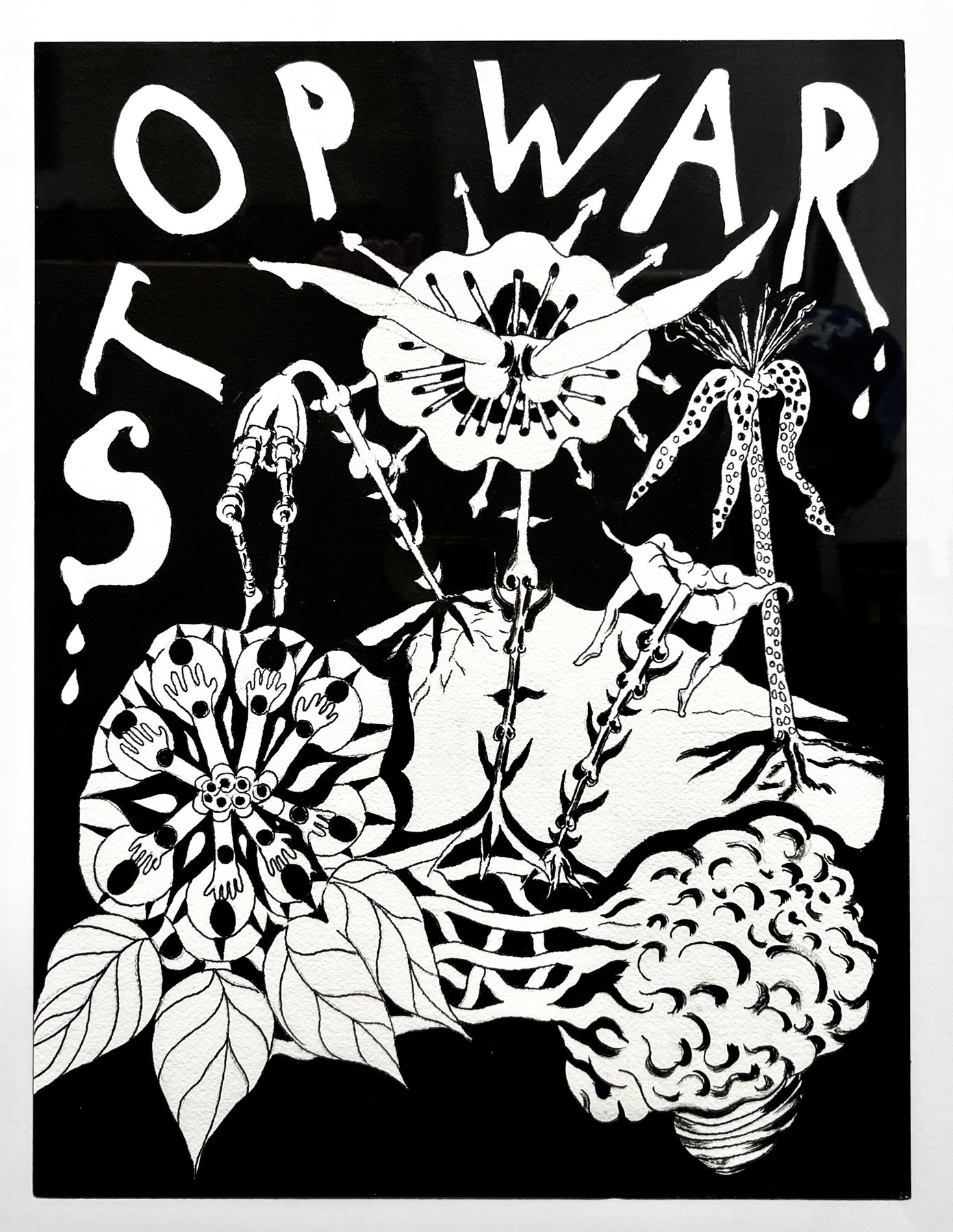 Graphite, pen, and acrylic ink on watercolor paper